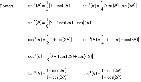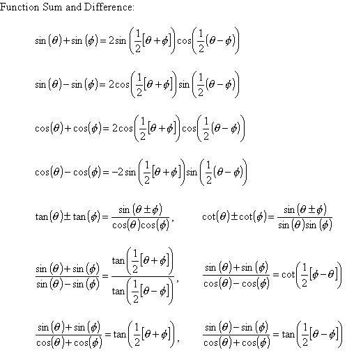 Useful Trigonometric Equations